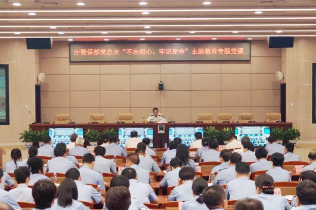 本网讯 (特约记者胡立强)8月27日,湖南省公安厅警保部党总支书记、主任刘湘奇以《忠诚守初心、奋斗担使命,谱写新时代警务保障工作新篇章》为题,为全部党员干部、民警职工、警辅人员80余人讲授了一堂“不忘初心、牢记使命”主题教育专题党课。课后,部党总支按照厅机关党委、机关工会的部署要求,组织大家集中学唱《中国人民警察警歌》、《我和我的祖国》。