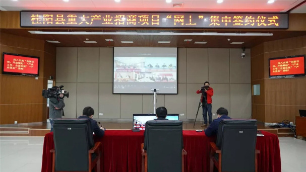 网上视频签约仪式是桂阳县“一手抓疫情防控、一手抓复工复产”的重大举措。网上视频签约仪式既别开生面,又务实紧凑,在桂阳县设主会场,与上海、苏州、广州、东莞各家企业视频连线,同步逐一进行“无接触式”签约。