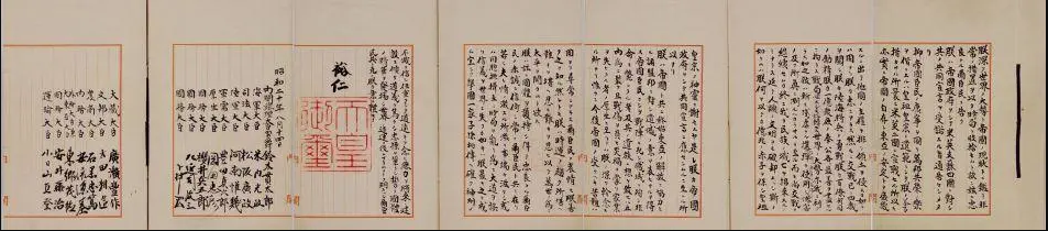 朕深鉴于世界大势及帝国之现状,欲采取非常之措施,以收拾时局,兹告尔等臣民,朕已饬令帝国政府通告美英中苏四国愿接受其联合公告。