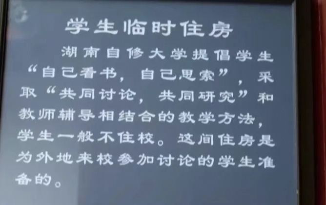 1921年8月16日,毛 泽东在湖南《大公报》上发表了《湖南自修大学组织大纲》,同时他又起草了《湖南自修大学创立宣言》。1921年9月,毛 泽东、何叔衡等人兴办的湖南自修大学开学,原船山学社的社长贺民范为校长,毛 泽东任教务长。