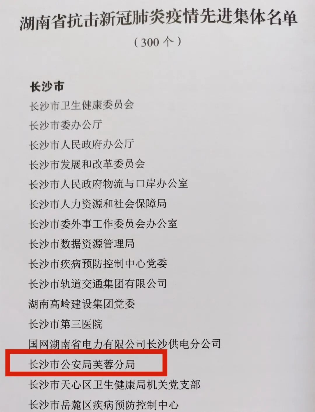 此间,芙蓉公安内涌现大批积极抗“疫”的民辅警,分局共发布“局长嘉奖令”4次,表彰疫情防控突出单位15个和先进个人53名,荣立二等功人员1名、三等功1名、嘉奖人员2名。