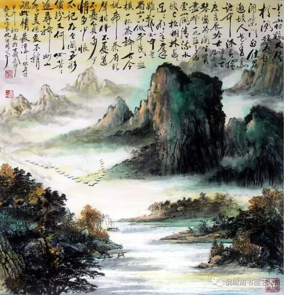 2018年的上半年,我从宁乡文化超市原“情未了”宾馆的杨建明先生处了解到了一些倪老最近的情况,并得到了一本有关他近况的个人精美画册。原来他在20多年前就到省会长沙发展去了。通过自己多年不懈的努力,他早已经在国内外书画界占居了一席重要的地位,在各项重大活动中获得的奖项和荣誉数不胜数,其艺术造旨和人格魅力令大众和同行们折服。从杨建明先生处还了解到:倪老师早在1984年就被评为了国家级美术师,1992年当选长沙市政协委员。现任中国农工党中央文化委员。曾任世界书道协会副主席,中国艺术书画家协会副主席、名誉主席,中外新闻社艺术顾问,湖南省对外文化交流中心首席专家顾问,湖南省小康发展中心文化办主任,中国人民大学客座教授,中共湖南省直机关党校客座教授,湖南省直行政学院客座教授,湖南省收藏协会艺术顾问,美国国宝画廊、加拿大国际画廊签约画家及艺术顾问,加拿大中国工商业总会顾问,福建总商会顾问,台湾中华文艺教育协会顾问等职。曾获联合国千年发展目标特别贡献奖,国际书画艺术家、中国慈善书法家、共和国骄子、三湘骄子,十佳明星等荣誉称号。其作品在海内外广泛流传。北京、广州、新加坡、日本等各地城市与国家都诚邀他举办过画展与艺术交流。台湾《人民报》董事长巫晓天先生在拜访倪老时惊叹他作品之完美,由衷地连连称赞道:“倪先生,你的作品一点也不逊于世界级大师张大千的作品啊!我与张大千是忘年之交,他的作品我最了解了,我一定要把你和你的作品推到台湾去。你和张大师都是中华书画艺术传人,究竟谁更胜一筹,相信读者自有定论!”。巫晓天回到台湾后,《人民报》随即连续用两个版面刊载倪继周书法绘画作品,连续刊发五期。每期报纸问世,都是一次倪继周轰动,更有读者致信致电报社,建议人民报代表台湾民众邀请倪继周先生来台湾进行书法绘画作品展览,让台湾同胞能亲眼看看倪继周先生的真迹作品。