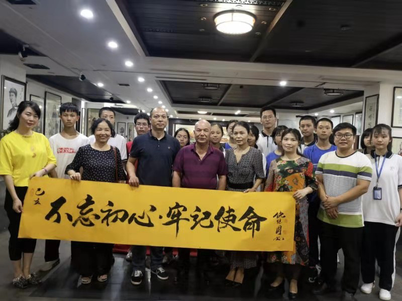 从我老屋里四井巷进出正街上都要从他的画室前面经过,由于画室太小,光线又不是很好,他经常会在画室的阶基上当众作画,我每次从那里经过都会在他的画室前驻足好一阵,认真地细细欣赏他绘画时的洒脱风格和精练手法。他的画室当年成为了城关镇街上一道美丽的风景,吸引了许多爱好画画的男女朋友。文化大革命期间,人们经常要在大街上进行游行庆祝活动。游行队伍中各单位最前面都会有4个人扛着毛主席的巨幅画像,这些画像好多都是出自当年年纪轻轻的倪老之手,我特别喜欢他那幅毛主席去安源的画像,人物朝气蓬勃,背景风云变幻,使人浮想联翩,整个画面活灵活现,呼之欲出。