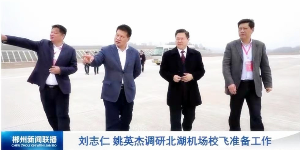 刘志仁、姚英杰一行实地察看了北湖机场航站楼各功能区、塔台、机场跑道等,仔细了解校飞前各项准备工作和机场设施建设情况。