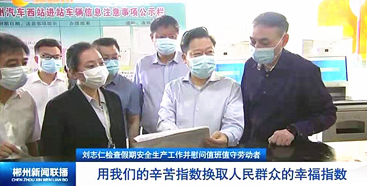 在市政府总值班室,刘志仁看望慰问了值班值守的工作人员,并通过视频现场抽查了宜章县、汝城县、资兴市、临武县等县市区值班值守情况,详细了解了安全生产、疫情防控、道路交通、旅游景区秩序、危化品运输安全、森林防火、值班值守等情况。刘志仁要求,要严格落实假期的值班值守,保持信息的畅通,提升应急处置能力;要加强调度,制定预案,压实责任,确保全市经济社会大局安全稳定。