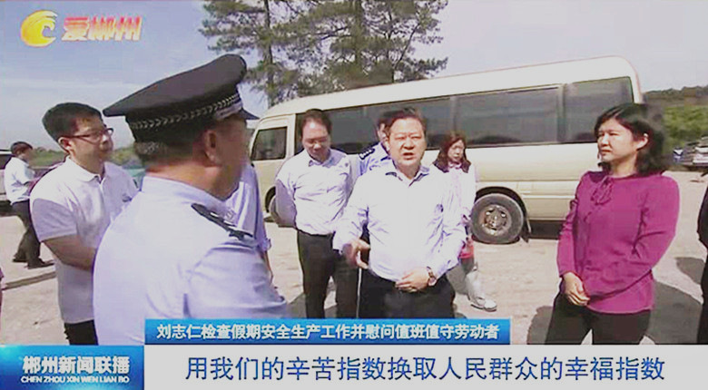 在苏仙区飞天山风景区高椅岭片区,刘志仁看望慰问了执勤的工作人员,检查了旅游安全工作。刘志仁要求=全市各旅游景区要进一步加强安全工作,做好游客的分流和疏导,维护景区良好的秩序;要加强旅游基础设施安全隐患的排查和整改工作,严防安全事故的发生;要做好景区周边交通的管理工作,确保景区道路交通安全、畅通有序。