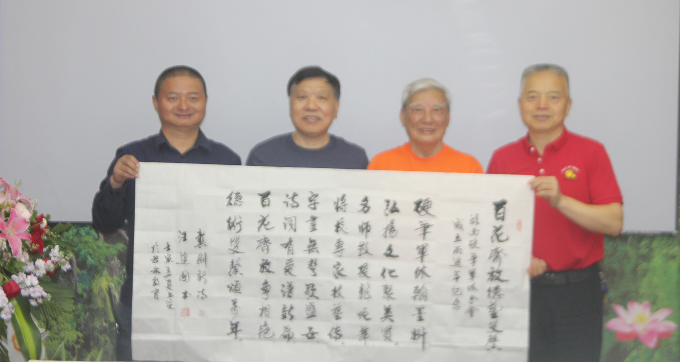 公司的董事长李军,是我们军休分会的优秀会员、副主席。他年轻有为,很有发展前途。早年是国防部长迟浩田身边的一名警卫干部,转业后回湘创业。他的最大特点是:讲政治,动脑子,敢负责任,敢于担当,仍保留了军人特质;他诚信重义讲感情,尊师重友讲团结,虽身兼多职,但对自己身处行业具有深入的了解和洞察,具有优秀的组织能力、管理能力和协调能力等。他与总经理衡驿牵头君承教育控股有限公司,工作非常出色。他们办公司,除了抓工程、勘察、设计等项目以外,其中一项重要职责是抓国防教育。2017年以来,他们先后帮扶共建了4所高中学校,如浏阳三中、宁乡七中、汩罗二中、师大二附中。经过他们的帮扶,浏阳三中获国家教育部与国防部授予的"全国国防教育特色学校"、"全国中小学国防教育示范学校",被空军工程大学等重点军事院校定为"优质生源基地″。君承教育控股有限公司抓国防教育举措的声誉在社会上也是响当当、呱呱叫的!是三湘大地国防教育的一面旗帜,省军区、省教育厅是他们的支持单位,省全民国教办是他们的指导单位,湖南教育广播电视台国防教育频道经常播报他们"打造校园内熏陶,基地里培训,产业中发展″的国防教育实践性经验做法。今天,他们获得湖南硬笔军休分会"会员之家"这块牌子来之不易,我们深知它的份量。它是董事长李军、总经理衡驿高度重视文化建设的结果,是他们从军旅中走出、现在经营国防教育板块,心中有着深厚的爱军拥军情结的结果!这块牌子镌刻着湖南硬笔军休分会对君承教育控股有限公司的厚爱,散发着君承教育控股有限公司对书法技艺的热情,浸透着君承教育控股有限公司文化艺术骨干的汗水,闪烁着君承教育控股有限公司追求文化强公司精神的光芒,也蕴含着湖南硬笔军休分会领导对君承教育控股有限公司的褒奖,标志着君承教育控股有限公司领导对弘扬中华传统文化的崇高姿态和坚强决心,更激励着君承教育控股有限公司承担传承中华文化特别是书法艺术的责任。
