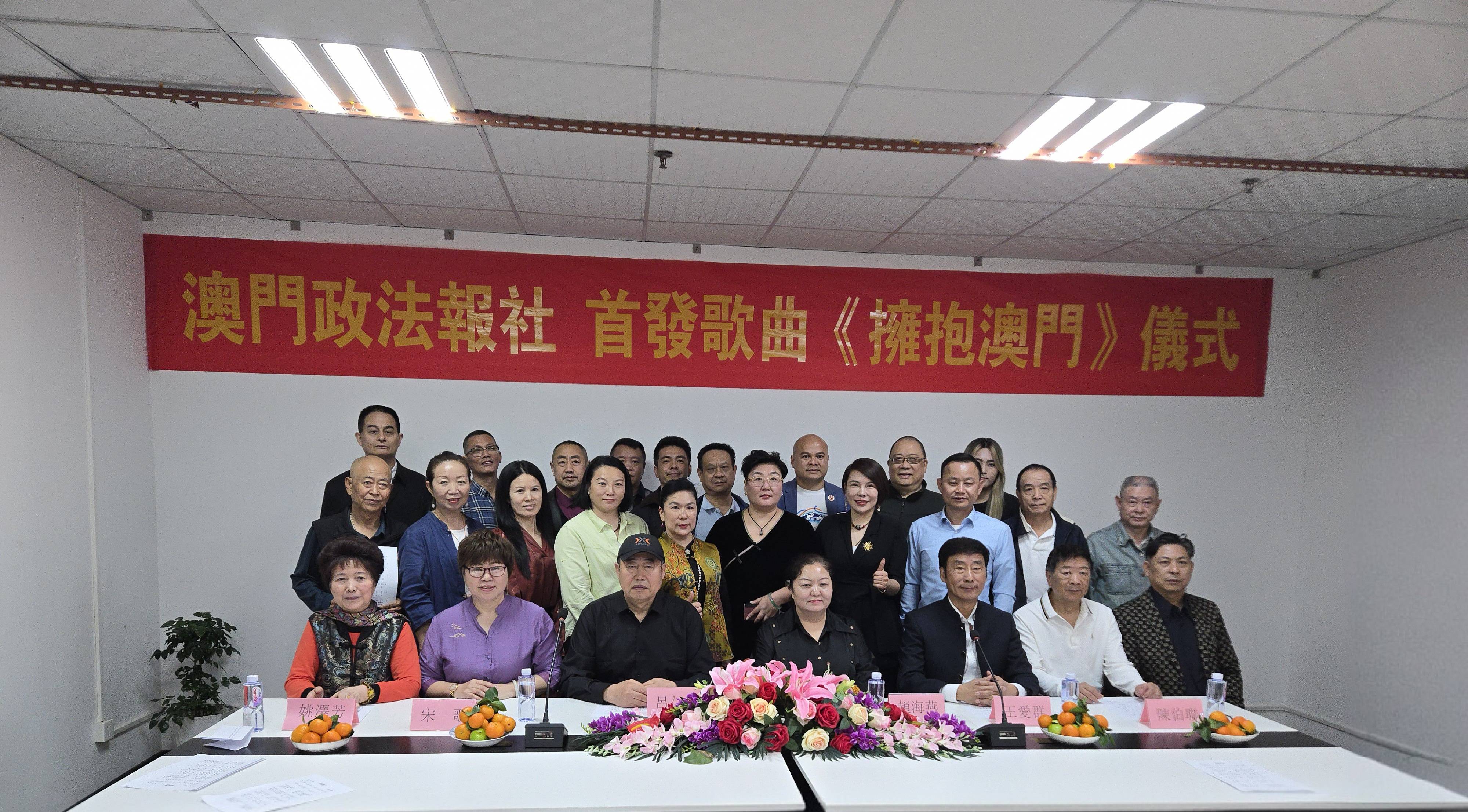 下午2点,三十多位领导和各界人士齐聚澳门政法报社,共同见证这一必将载入史册的歌曲首发式。