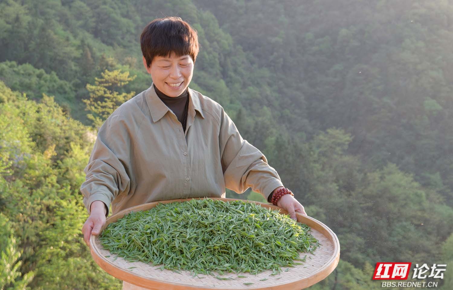 蔡凤娇在祖师界茶园喜获采茶丰收