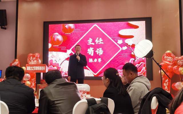 本网长沙讯(全媒体记者刘军麒)1月31日,湖南力之军律师事务所年会圆满举行。全所同仁与顾问、嘉宾欢聚一堂,共同回顾过往一年的奋进历程,畅谈法治为民实践,共绘律所未来发展蓝图。作为一家充满活力的年轻律所,力之军始终以党建为引领,秉持“抓党建、促所建、强业务、惠民生”理念,在陈力军主任、罗玉双书记等合伙人的带领下,以专业坚守与责任担当赢得行业认可与社会赞誉,更在实践中走出了独具特色的发展路径。
