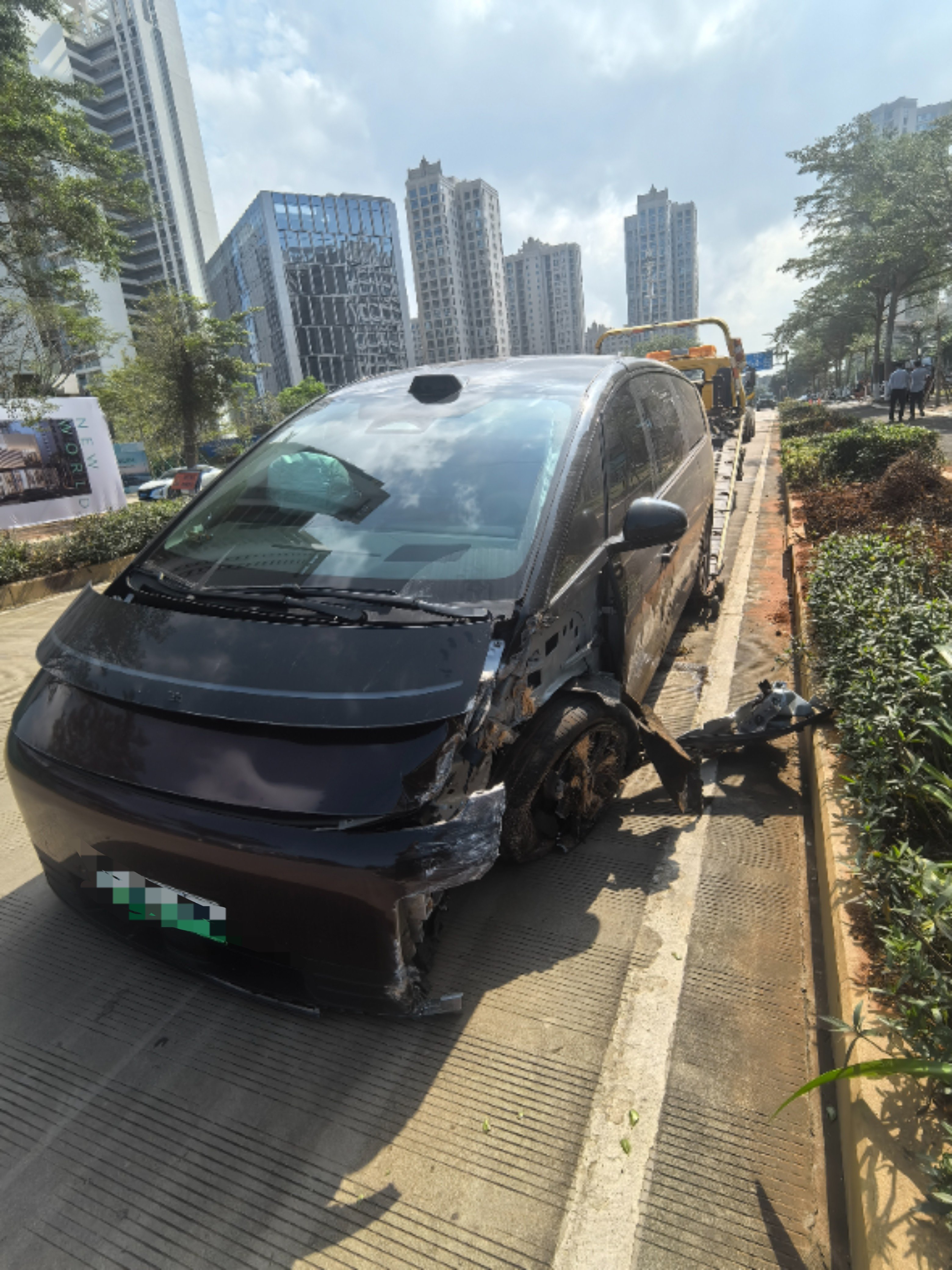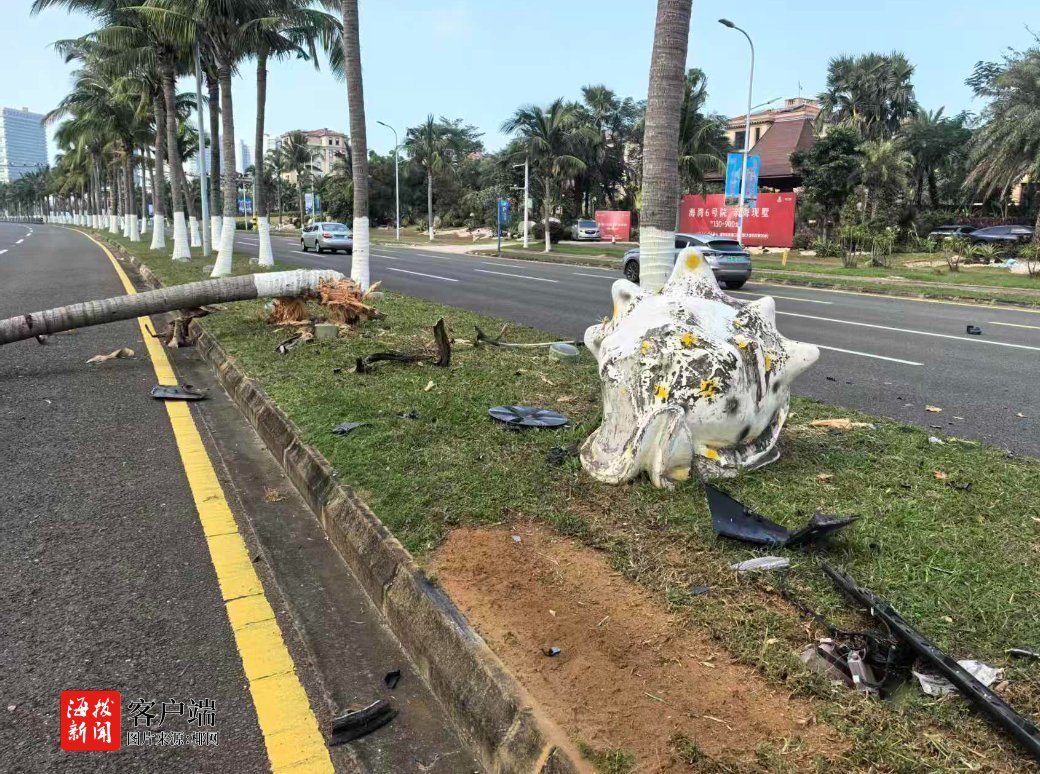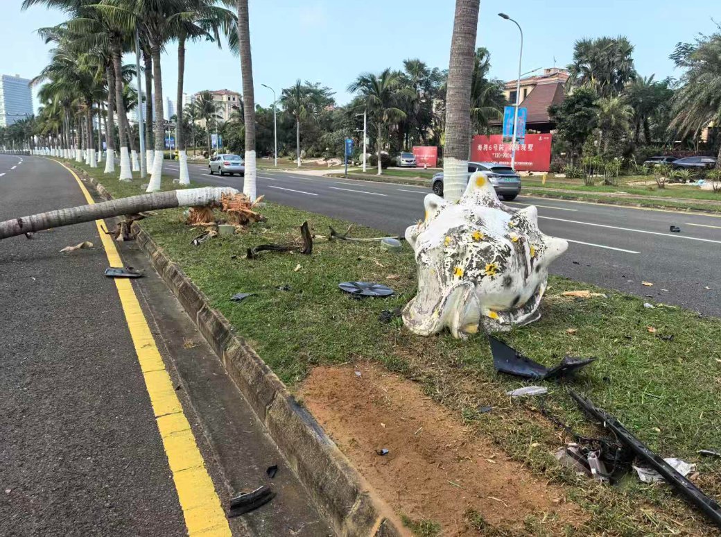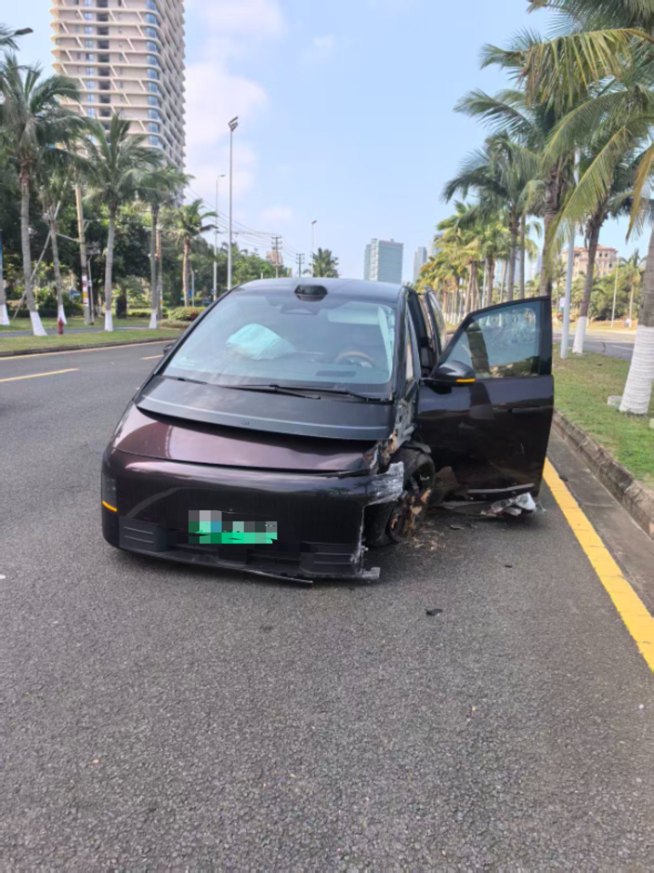 刘先生称,更为严重的事故发生在2025年12月12日12点12分。当时,他行驶在路况良好的海口市滨海大道(会展中心附近路段),在正常驾驶的情况下启用车辆智能驾驶功能,车辆却于约每小时67公里的速度下发生碰撞,最后导致全车报废,造成该路段两棵椰子树被撞倒,他本人也受了轻微伤。